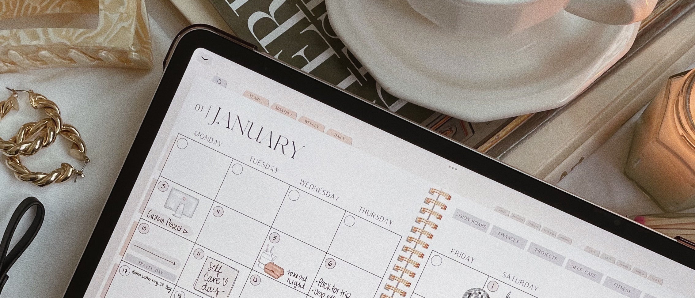 A digital planner is a fully interactive PDF file designed to be used on a tablet with a stylus (like the Apple Pencil). Think of it as a paper planner, but better. You can flip through pages, tap tabs to jump between sections, and even undo mistakes with a tap.