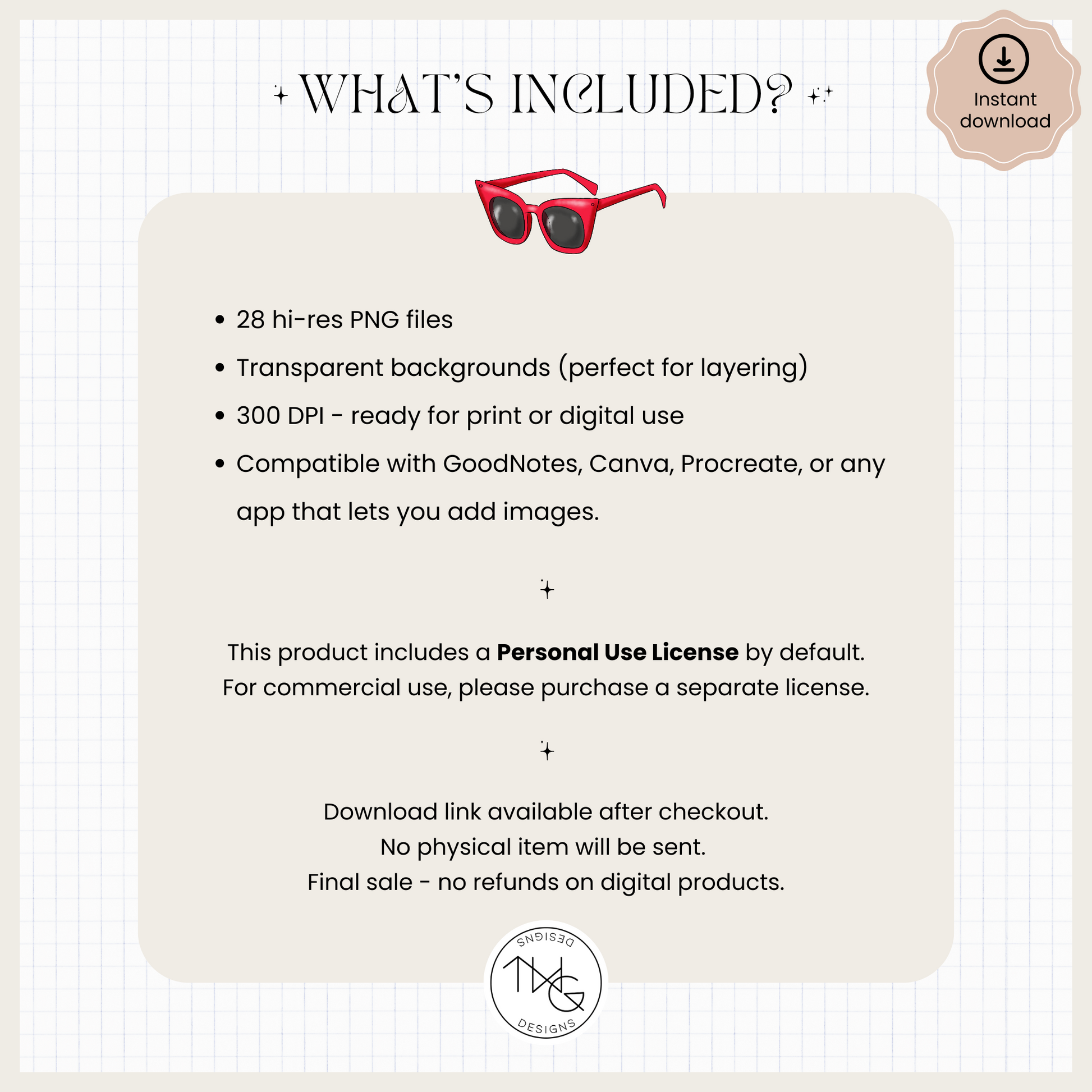 It’s a collection of cute, high-quality ready-to-use images (PNGs with transparent backgrounds) that you can drag and drop into your digital planner, journal, or designs - no special software, design skills, or experience needed!