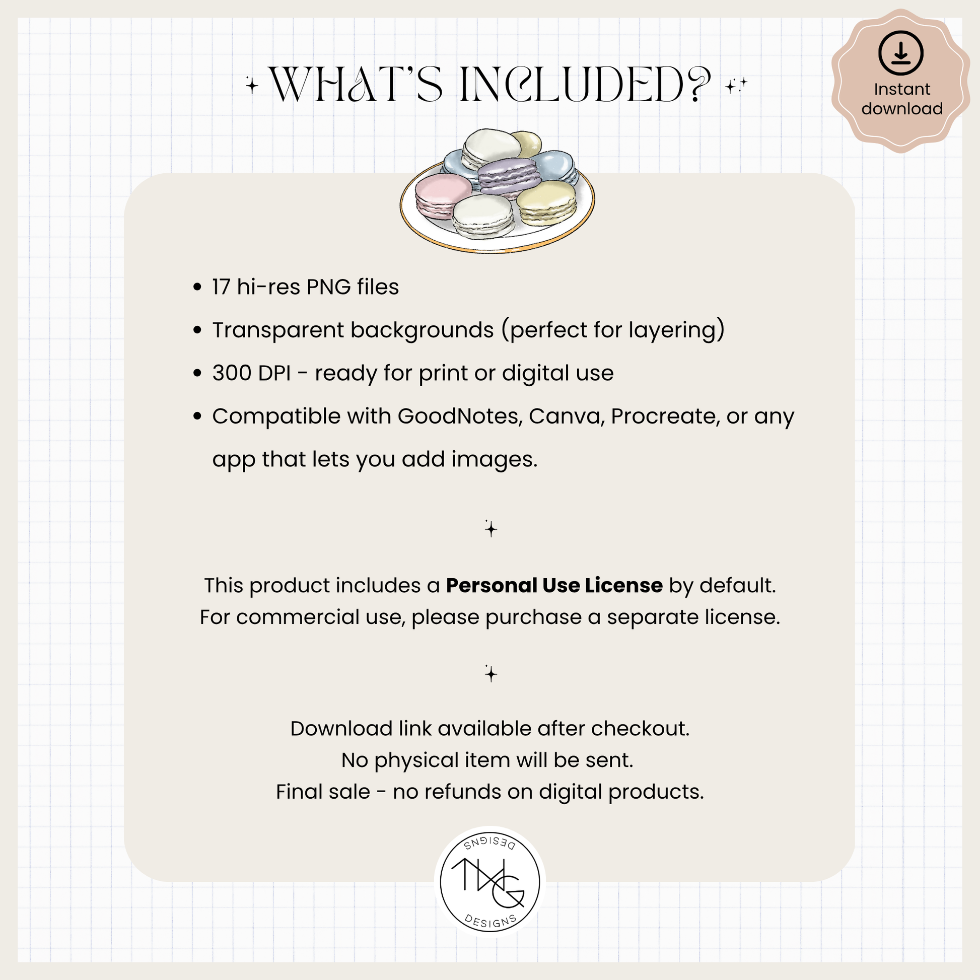 It’s a collection of cute, high-quality ready-to-use images (PNGs with transparent backgrounds) that you can drag and drop into your digital planner, journal, or designs - no special software, design skills, or experience needed!